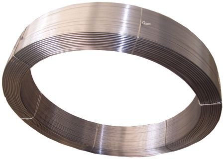 Wire diameters range widely from 1.2 mm (considered 'fine' or used in twin-wire submerged arc applications) up to 6.4 mm, supporting welding currents ranging from 150 to 1600 amps. To enhance performance, ferritic steel welding wire is often copper plated to extend its life at the contact tip, improve conductivity, and prolong shelf life. In contrast, stainless steel and nickel alloy welding wire is typically bright-drawn and remains uncoated. The wire is supplied either in reels weighing 10 to 50 kg or in larger pay-off packages weighing up to 500 kg. For cladding purposes, strip widths range from 15 to 240 mm with a standard thickness of 0.5 mm, available in various coil weights.